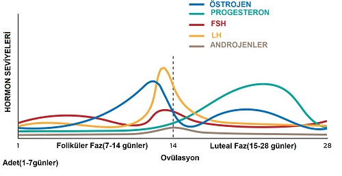 Adet döngüsü, bir kadının vücudunda adeta sessiz bir senfoniyi yönetir. Adet kanaması, döngünün başlangıcını tanımlar (döngünün 1. günü). Döngünün 7-14. günleri "Foliküler faz" olarak tanımlanır; bu fazda yumurtalıklar en güçlü formu östradiol olan östrojen salgılar ve bu hormon yumurtlamadan bir gün önce en yüksek seviyeye ulaşır. 14. günden sonra "Luteal faz" başlar ve 28. Güne kadar sürer. Bu fazda yumurtalıklarda korpus luteum gelişerek progesteron üretir. Östradiol seviyeleri yumurtlamadan yaklaşık beş gün sonra tekrar yükselir. Luteal faz sona ererken, azalan östrojen ve progesteron seviyeleri adet kanamasının başlamasını tetikler. Bu hormonal döngü tekrarlar.
