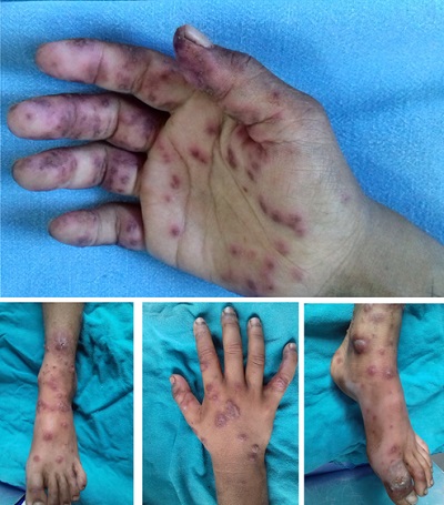 Gövde ve ekstremite döküntüsü (Retiküler/dantelimsi patern),
