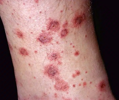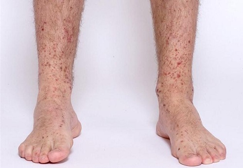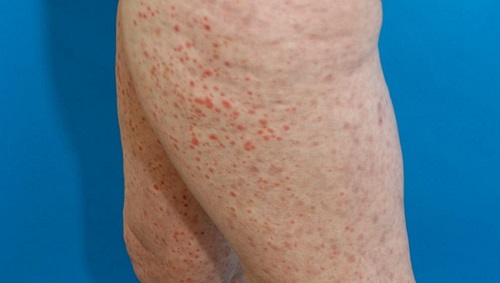 Genellikle bacaklar ve basınç altındaki alanlar etkilenir. Döküntü kalça, kol veya karın bölgesine yayılabilir, ancak gövde nadiren etkilenir. Lezyonların görünümü asemptomatik olabileceği gibi, kaşıntı ve yanma ile de ilişkili olabilir.