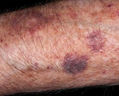 Deriden kabarık olarak fark edilebilen purpura: Elle muayenede fark edilebilen, deriden kabarık, yuvarlak veya oval, kırmızı veya mor papüller ve/veya plaklardır. Bazen elle zorlukla fark edilebilir.