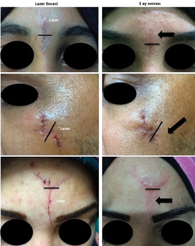 Cerrahi suture kapatmadan hemen sonra yapılan fraksiyonel CO2 lazer: Cerrahi alan dikiş atıldıktan hemen sonra nokta boyutu 120 μm, mikro-ışın başına enerji 80 mJ, darbe süresi 600 μs, fraksiyonel yoğunluk %4 ve 250 Hz tekrarlama hızı ile fraksiyonel CO2 lazer uygulanmakta.