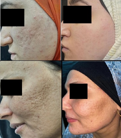 Atrofik akne izlerinin yaygın tedavileri arasında lazer, subsizyon, kimyasal peeling, dolgu, mikro iğneleme, radyofrekans ve yağ enjeksiyonu yer almaktadır. Son yıllarda, izlerin klinik formu ve derinliğine göre seçilen kombinasyon tedavileri ön plana çıkmıştır. Atrofik izlerin tedavisinde "altın standart" ablatif fraksiyonel CO2 lazerdir. Lazer uygulandığında, ciltte mikro-sütunlu buharlaşma bölgeleri (MTZ) ve termal olarak pıhtılaşmış nekrotik alanlar oluşturarak keratinositlerin yeniden epitelizasyonunu, dermal dokuda ise kolajen üretimi ve yeniden düzenlenmesini sağlar. Bu yapılandırma, istenen klinik yanıtın alınmasını sağlar. Tüm formlarda başarılı sonuçlar verse de özellikle rolling tipi izlerde, boxcar tipine göre daha etkilidir; icepick tipi izlerde ise etkinliği daha sınırlıdır.