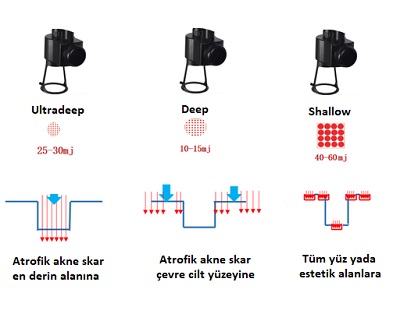Atrofik skarların en derin kısımları: Deep modda 25-30 mJ enerji.