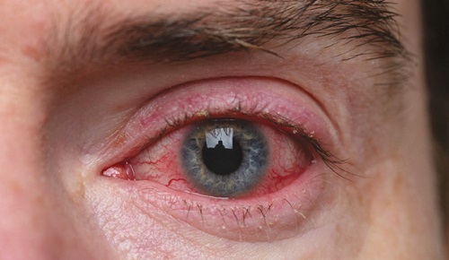 Oküler Bulgular: Göz kapağı kenarı teleanjiektazisi, interpalpebral konjonktival enjeksiyon (), korneada kürek şeklinde infiltrat ve sklerit/sklerokeratit gibi göz bulguları.