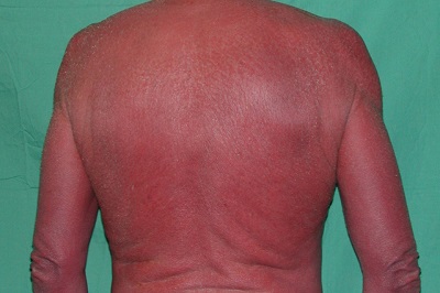 Nadir görülen, ciddi ve kontrol edilemeyen hastalık vakalarında sedef hastalığı, hipotermi, enfeksiyon riski, akut böbrek hasarı ve yüksek debili kalp yetmezliği gibi olası komplikasyonlar nedeniyle yaşamı tehdit eden yaygın eritematöz döküntülere (eritroderma) neden olur.