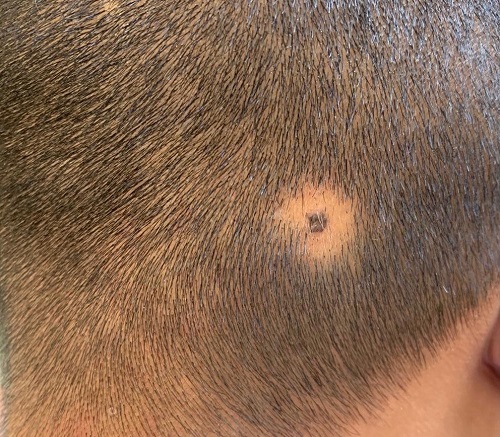 Alopesia areata, Yamalı Alopesi (Patchy Alopecia): En yaygın alopesi türüdür. Yuvarlak veya oval şekilli, boyut ve konum olarak değişen, bir veya daha fazla belirgin, yara izi (skar) bırakmayan kel yama olarak ortaya çıkar. Hasarlı saçlı derinin yüzeyi pürüzsüz, bazen pembe renktedir. Hastaların çoğunda hiçbir belirti yoktur, ancak bazıları, özellikle hastalığın başlangıcından önce, lokalize karıncalanma, kaşıntı veya alışılmadık hisler yaşarlar.