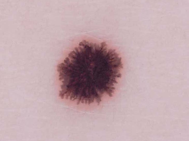 Bir cam şişenin tabanı gibi görünen lekelerdir. Bazen bunlar gri-mavi renkte olabilmektedir. Histopatolojik olarak agresif davranan melanositleri, melanofajları ve bunun üzerini örten orthokeratosis, hipergranülosis ve akantozis gösteren epidermisi tanımlamaktadır.