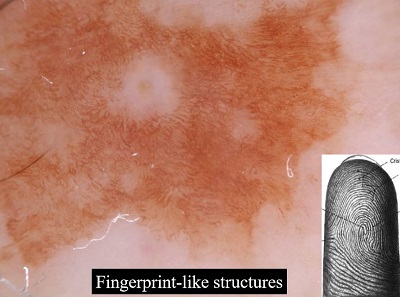 Parmak izini andıran açık kahverengi ince paralel çizgilerden oluşan ağ benzeri yapıdır. Histopatolojik olarak akantotik epidermisin invaginasyonlarını temsil eder.