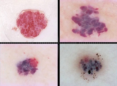 İyi sınırlı, yuvarlak-oval, kırmızı, kırmızı-mavi, mavi, siyah renkli yapılar olan “lakünler”in lezyon geneline hakim olmasıdır. Histopatolojik olarak lakünler dilate kan damarlarını ifade eder. Bunlar tromboze olduklarında siyah renkte görünürler.