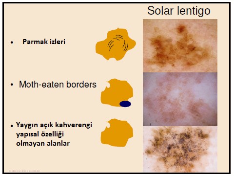 Melanositik olmayan lezyonlarda spesifik dermoskopik bulgular bulunmaktadır. Bunlar ayırıcı tanıda son derce önemlidir.