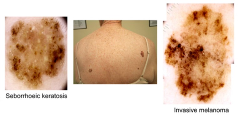 Aşağıdaki hastanın sırtında solda seboreik keratozis sağda ise maling melanoma görülmekte.