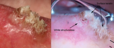 Beyaz circle-halkalar tamamen keratinize skuamöz hücreleri göstermektedir. Buda SCC ve Aktinik keratozis için tanıda önemlidir.