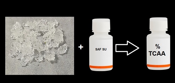 TCA kristal formdadır ancak nemli ortamda stabil değildir. Hava ortamındaki nem ile bile eriyebilmektedir. Bu nedenle kristal formu iyi saklanmalıdır. Peeling amaçlı kullanılan TCAA formları bu kristallerin saf su içerisinde solüsyonlar şeklinde hazırlanmakta (bunlar TCA-SAS olarak tanımlanmakta). Ancak bu solüsyonlar, kristal formları gibi stabil değildir. Ortamdaki nemi alarak solüsyonun konsantrasyonu seyrelmektedir.