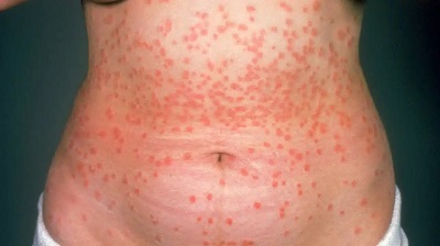 Nadir görülen, ciddi ve kontrol edilemeyen hastalık vakalarında sedef hastalığı, hipotermi, enfeksiyon riski, akut böbrek hasarı ve yüksek debili kalp yetmezliği gibi olası komplikasyonlar nedeniyle yaşamı tehdit eden yaygın eritematöz döküntülere (eritroderma) neden olur.