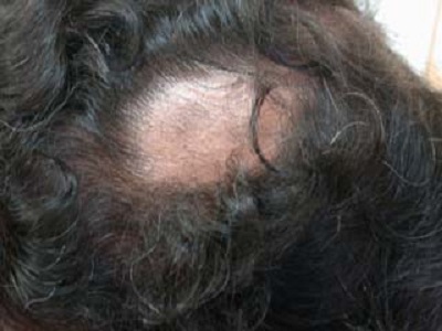 Dermatoscopyde kısa telogen saçlar gözlenmektedr.3-6 cm
